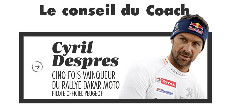 Le récent vainqueur du Silk Way Rallye au volant de son buggy Peugeot n’est pas un amateur en matière de rallye. S’il vise une victoire sur quatre roues en Dakar après son podium en 2017, la légende de Cyril Despres s’est d’abord construite à moto. Avec cinq victoires au guidon d’une KTM entre 2005 et 2013, dix podiums en quatorze participations moto et 32 victoires d’étapes, le savoir-faire du Francilien de 43 ans est incontestable. Pour GQ, ce pilote aux multiples casquettes a accepté de livrer quelques secrets de sa préparation physique à l’époque où il traversait les dunes africaines et latino-américaines plus vite qu’aucun autre.