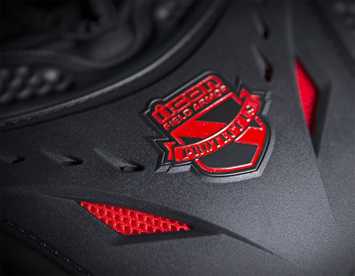 Légère et aérée pour une pratique intensive en plein cagnard, la Stryker comporte une dorsale dont elle a le secret. A l’image d’un insecte, elle s’articule sur un châssis (Airmesh et Hydradry ™ pour aider à éliminer l’humidité) avec des panneaux imbriqués les uns aux autres. Une gaine velcro permet de l’ajuster pour un confort optimal et une efficacité redoutable. En plus d’un look futuriste, cette conception protège sans contraindre les mouvements de son propriétaire. Mais les coudes et les épaules ne sont pas en reste. Là aussi on retrouve la technologie D3O d’Icon avec des inserts large pour une protection des articulations mais aussi des avant-bras et de la partie haute de l’épaule, au niveau de la clavicule. A l’avant, on retrouve une plaque thoracique en plastique moulé avec des inserts là aussi ventilés. Vous n’avez plus d’excuse pour ne plus vous mettre en selle.