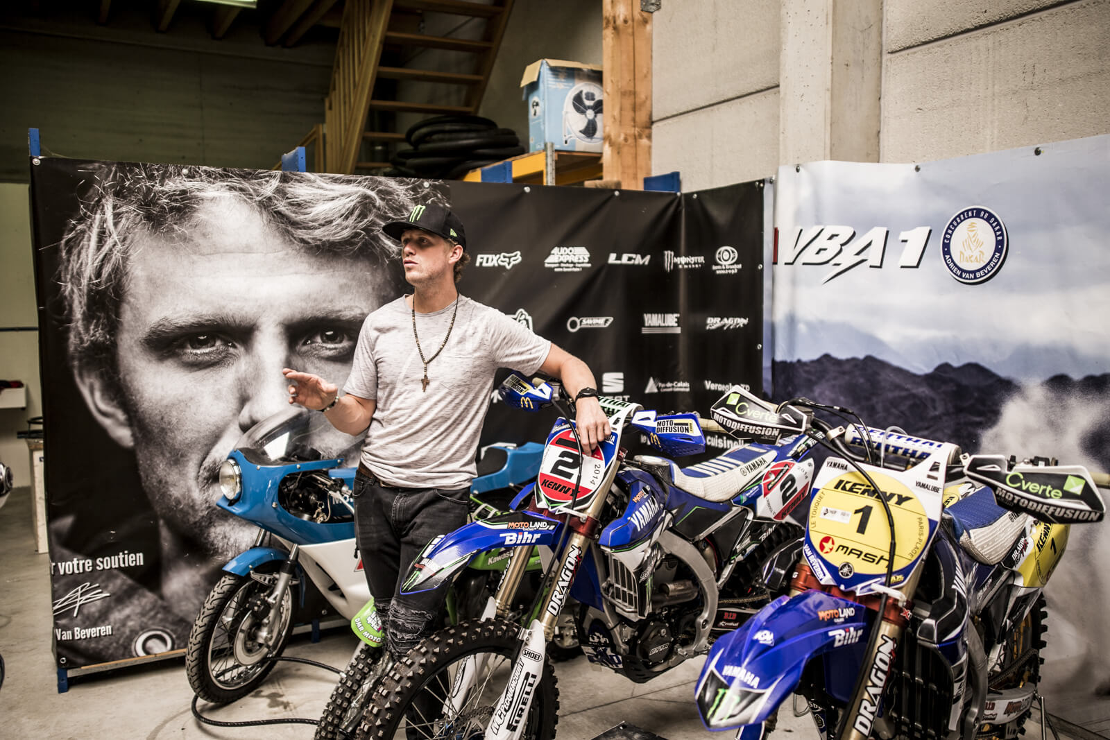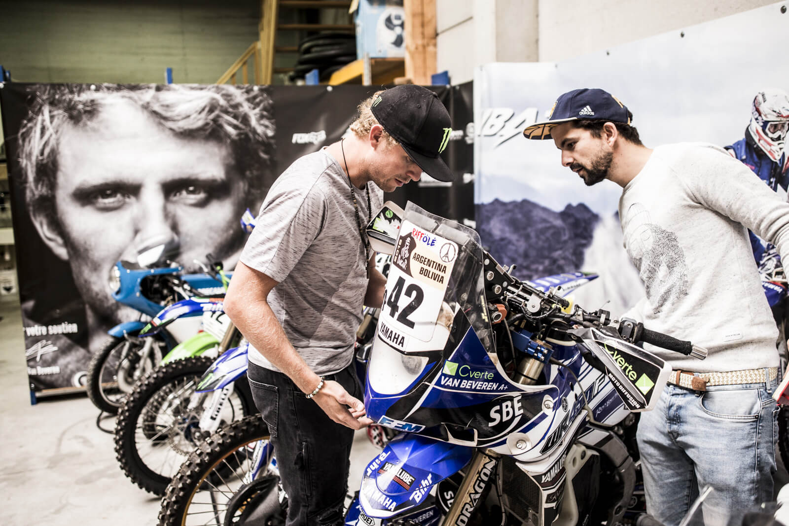 Attablé avec ses partenaires de Monster Energy, des photographes et GQ, le local analyse la courte période qui séparent le Dakar de l’Enduropale du Touquet, l’une des courses de sable les plus réputées au monde. Et pointe les erreurs de préparation qui lui ont coûté la victoire. Après le Dakar, Van Beveren remporte une course sur sable – son passe-temps favori – à Loon-Plage, son fief près de Dunkerque. Puis enchaine. « J’étais convaincu de rafler une 4ème victoire au Touquet. J’avais analysé la situation. Le Dakar c’est une course de fond, un marathon. Alors que le Touquet se court comme un sprint de 3 heures avec des tours sur une plage immense. Il faut y jouer des coudes. Au niveau cardiaque, c’est 20 pulsations de différence, un autre monde en fait. On ne travaille pas du tout la même chose. » Il faut donc adapter l’entraînement.