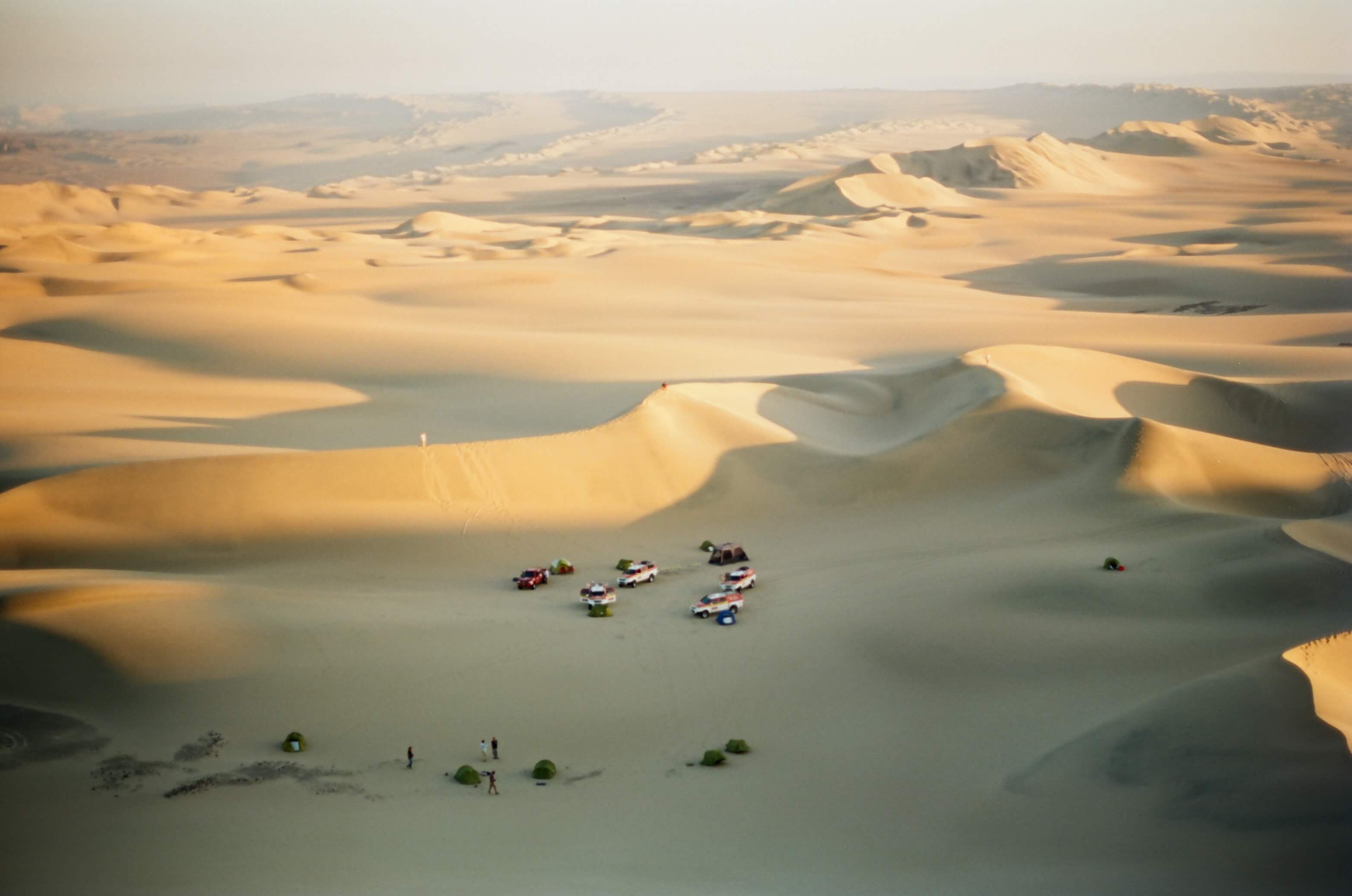 On redescend avant d’être dans le noir. Coma, Chavi et Ezequiel, Juan et Mike s’installent autour de la table. Deux heures durant, ils reliront chacune des notes du roadbook pour vérifier que la mécanique est bien huilée. Les autres dressent la table, le vin est servi, la troupe finit par se réunir. Les souvenirs des précédents Dakar en Afrique côtoient ceux de l’Amérique Latine. Galères, moments de joie, ivresse des paysages et des rencontres faites à travers les continents, rien n’est oublié. Coma ordonne finalement l’extinction des feux, somme toute symbolique, puisque l’obscurité nous entoure. Le lendemain, la cuvette où se trouve le camp de base est baignée dans la Nebila - brouillard - et on ne voit pas à plus de cinq mètres. Après plusieurs heures à batailler dans le sable sans voir plus loin que le bout du capot, nous arrivons à l’orée de la panaméricaine. Fin du voyage. Marc Coma stoppe le convoi et nous offre un dernier café. Avant de le quitter, il nous invite à assurer aux participants qu’ils sont entre de bonnes mains pour vivre l’une des plus grandes aventures mécanique, sportive et humaine de leur existence. Rendez-vous le 6 janvier prochain pour en avoir le coeur net.